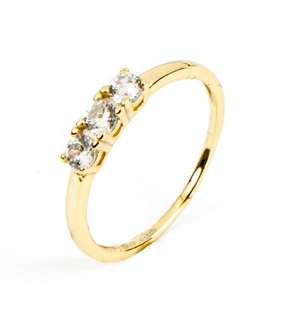Anello realizzato in argento 925% dorato con tris di zirconi bianchi centrale.