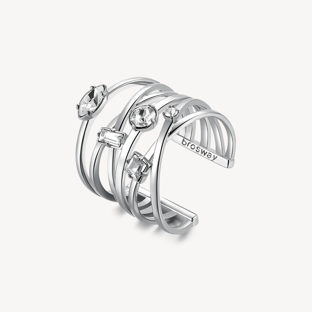 Anello a fascia in ottone rodiato con cristalli Swarovski©.