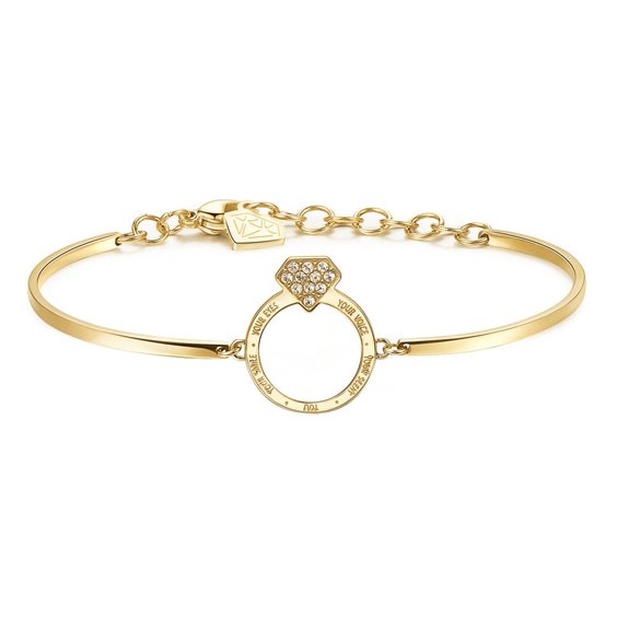Bracciale semirigido in acciaio e pvd oro con anello centrale.
