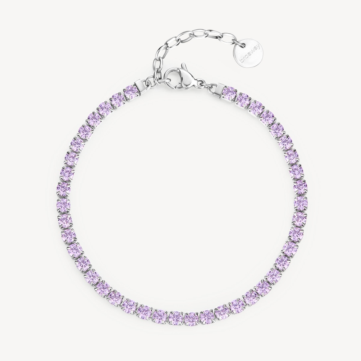 Bracciale tennis in acciaio 304 e cubic zirconia colore amethyst.