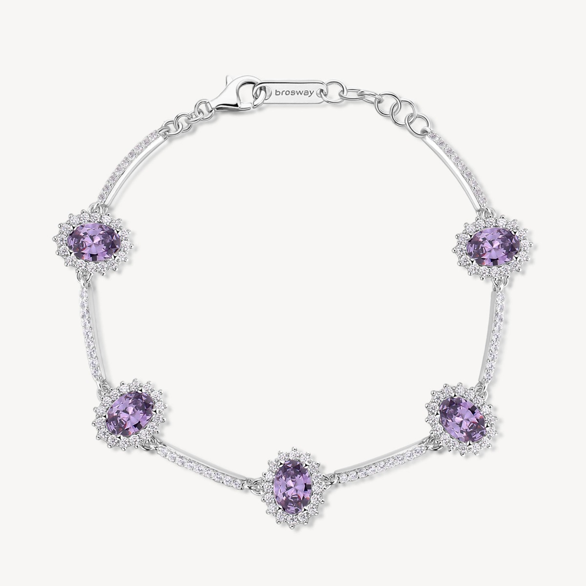 Bracciale da donna Brosway della collezione Fancy. Bracciale Kate semirigido in argento rodiato 925‰ con oval cubic zirconia chiari e colore amethyst.