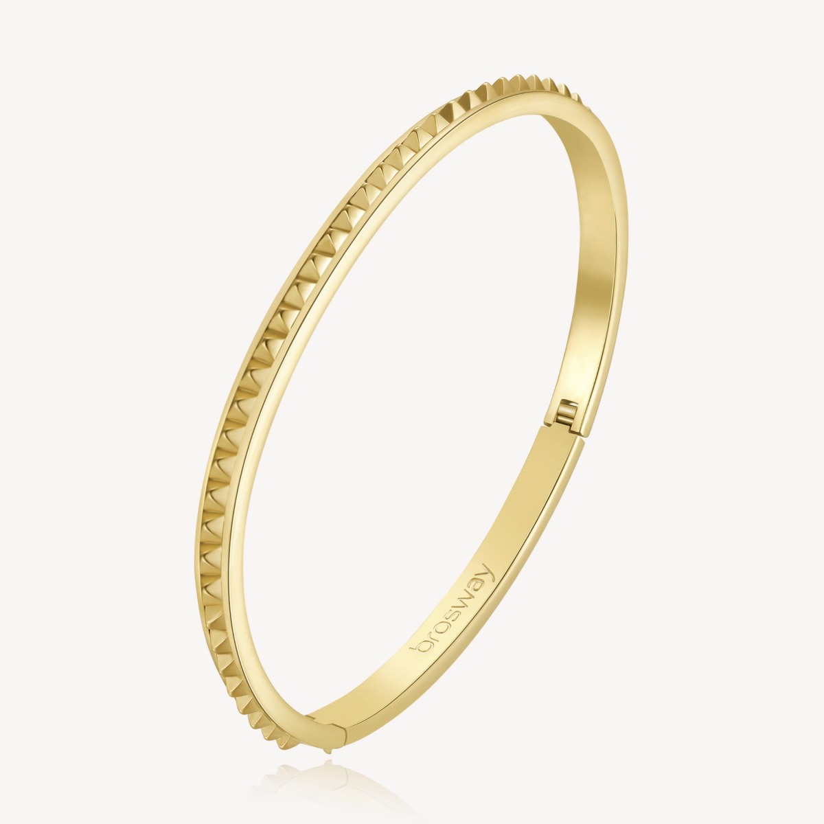 Bracciale rigido in acciaio 316L e finitura pvd oro 14K con incisione.