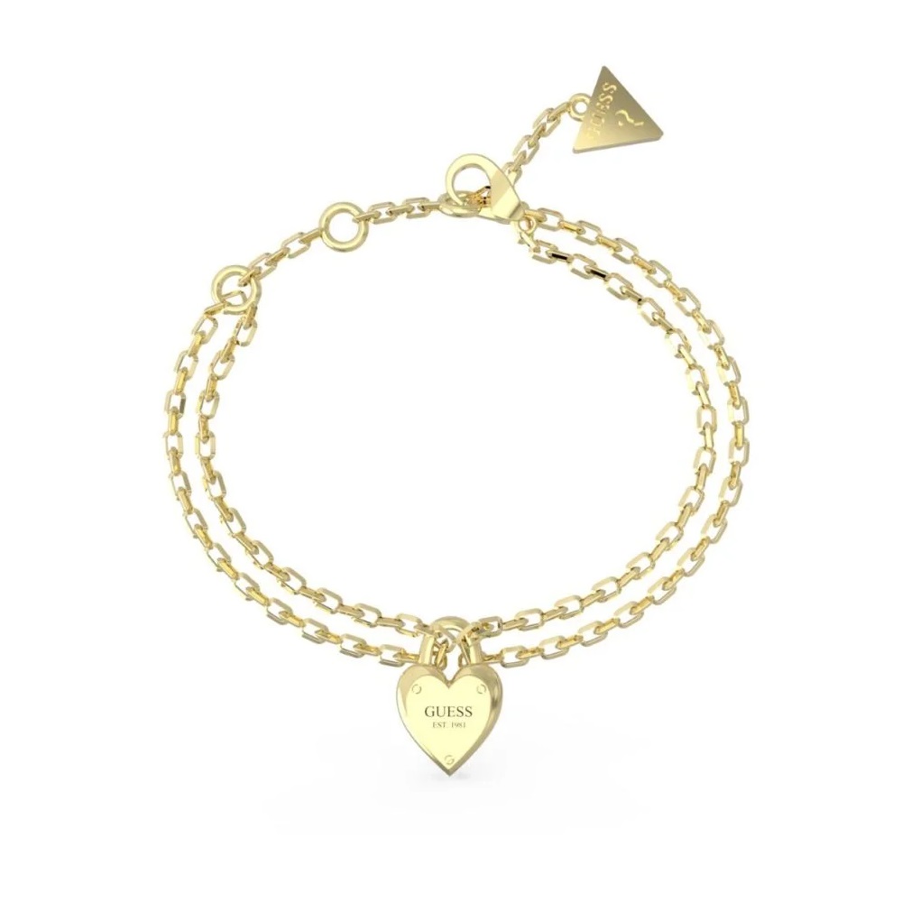 Bracciale da Donna in Acciaio Dorato con Cuore e Scritta Guess