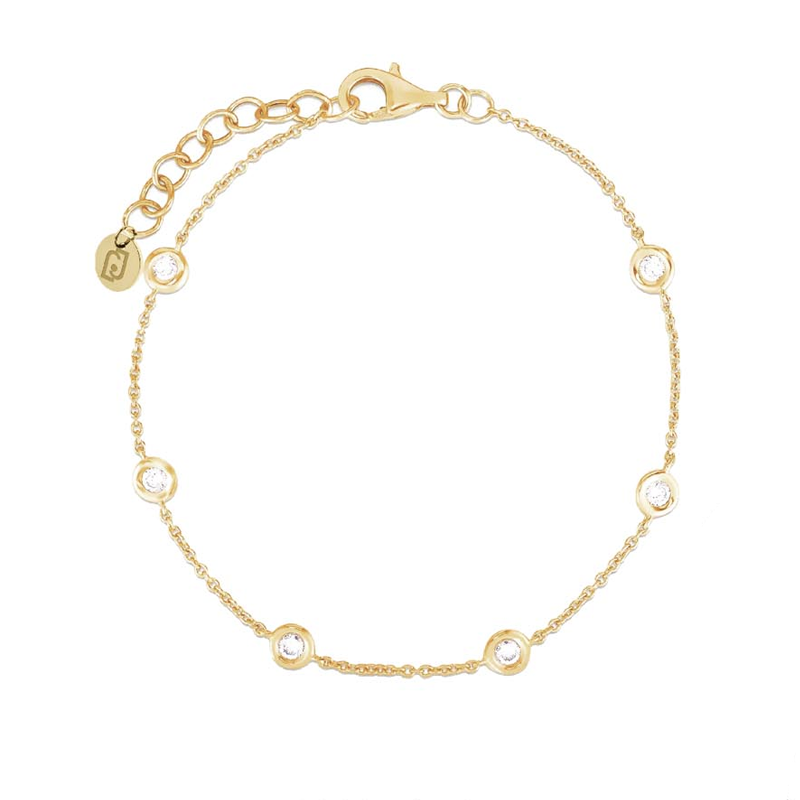 Bracciale realizzato in acciaio dorato lucido, con zirconi bianchi incastonati.
