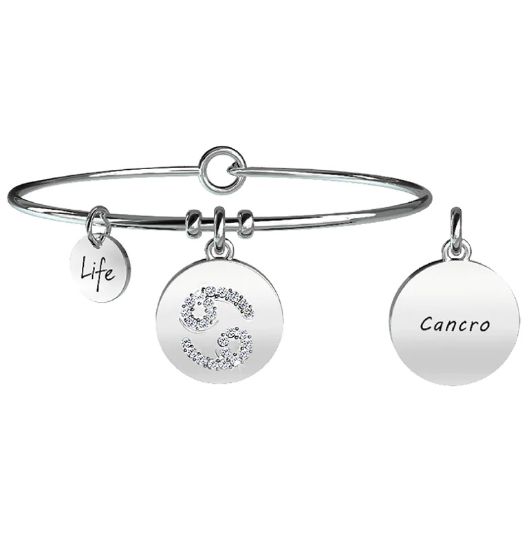 Bracciale bangle in Acciaio con charm con segno zodiacale CANCRO.
