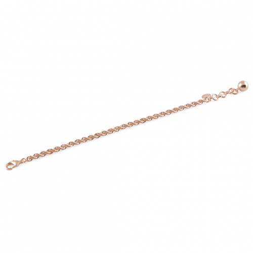 Bracciale in bronzo bagno oro rosè di catena in maglia corda con chiusura a moschettone, regolabile grazie ad anelli di allungamento.