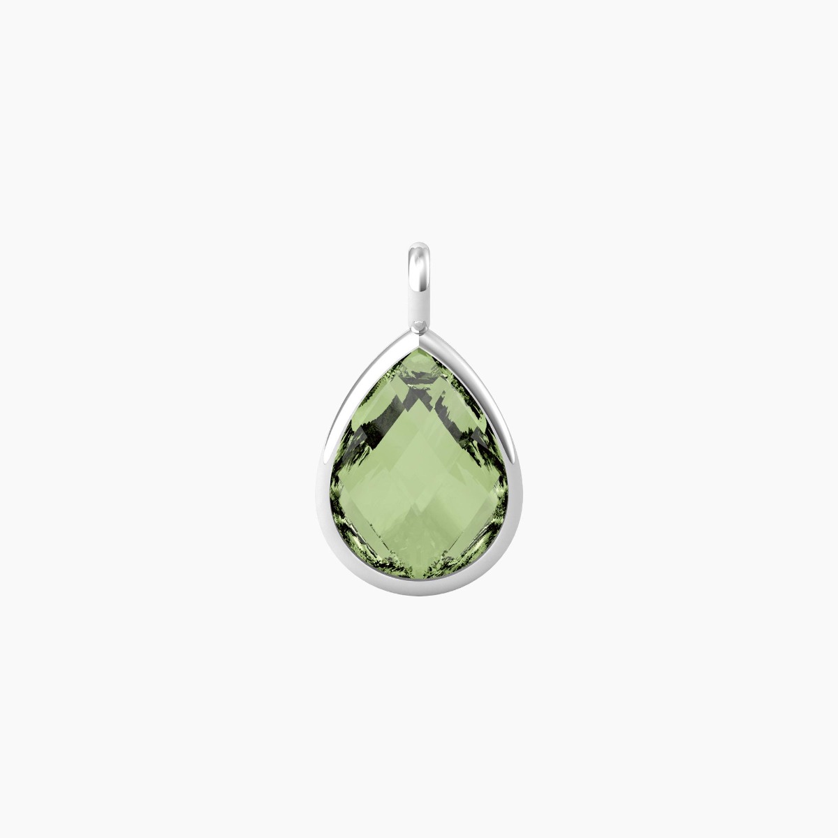 Ciondolo in acciaio a forma di goccia con glass verde faccettato taglio briolette.