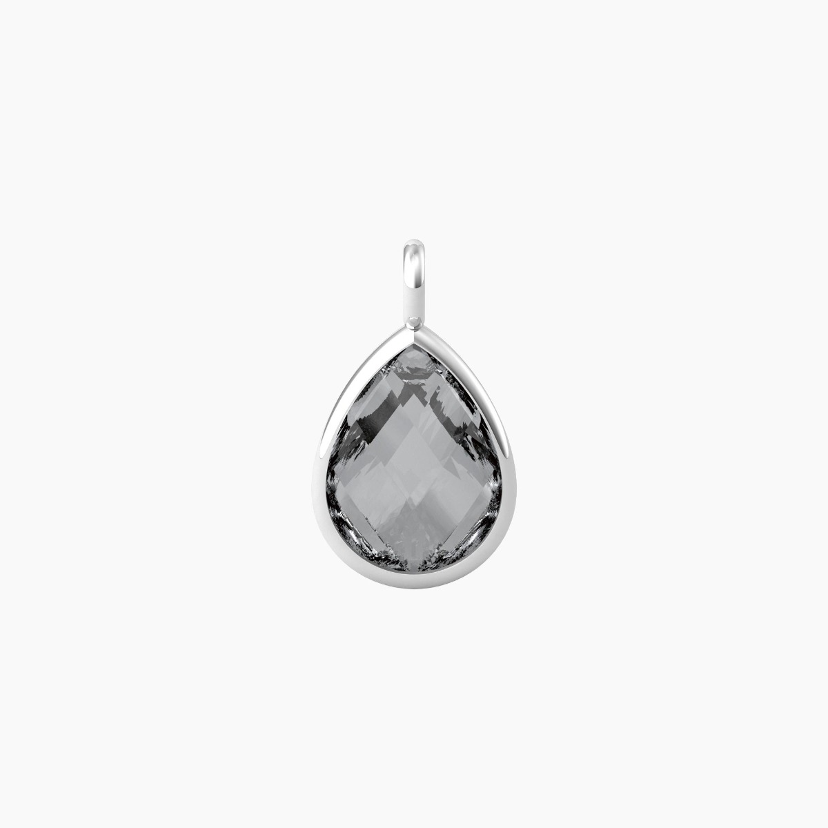 Ciondolo in acciaio a forma di goccia con glass grigio faccettato taglio briolette.
