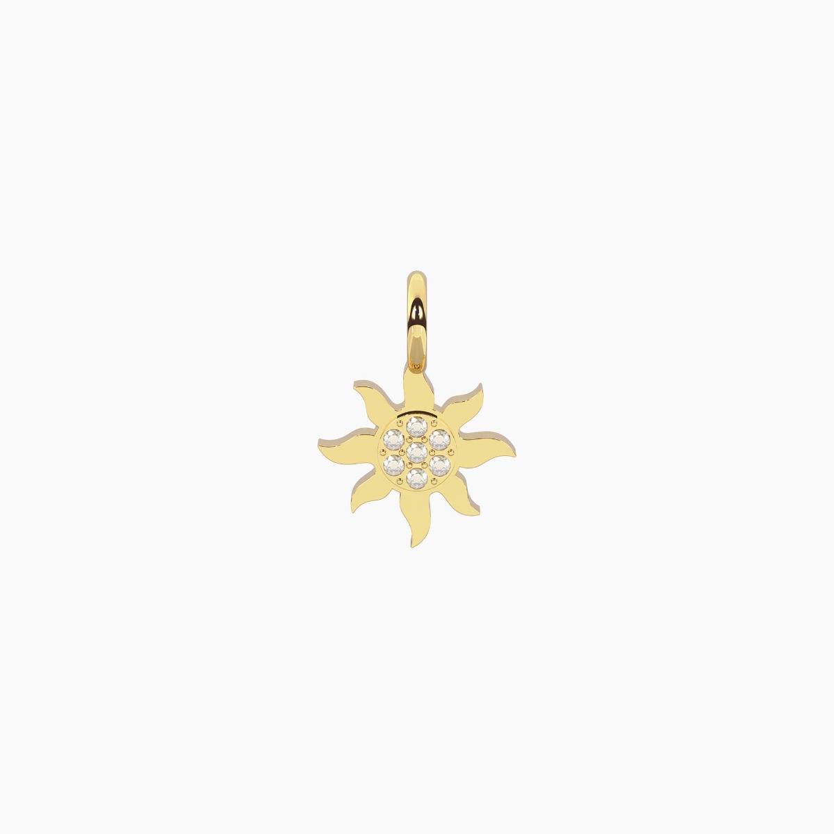 Ciondolo in acciaio e PVD giallo a forma di sole con cristalli.