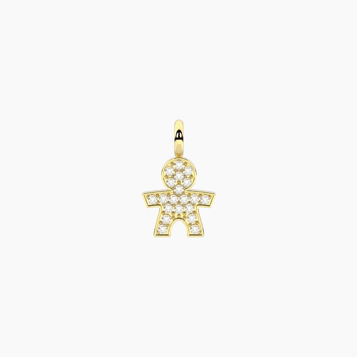Ciondolo a forma di bambino in acciaio e PVD giallo con cristalli bianchi.