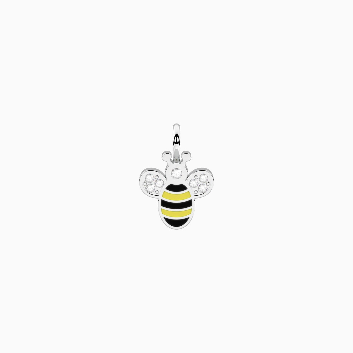 Ciondolo in acciaio a forma ape smaltata con cristalli.