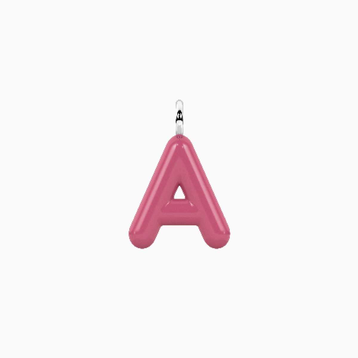 Ciondolo in acciaio smaltato rosa a forma di lettera "A".