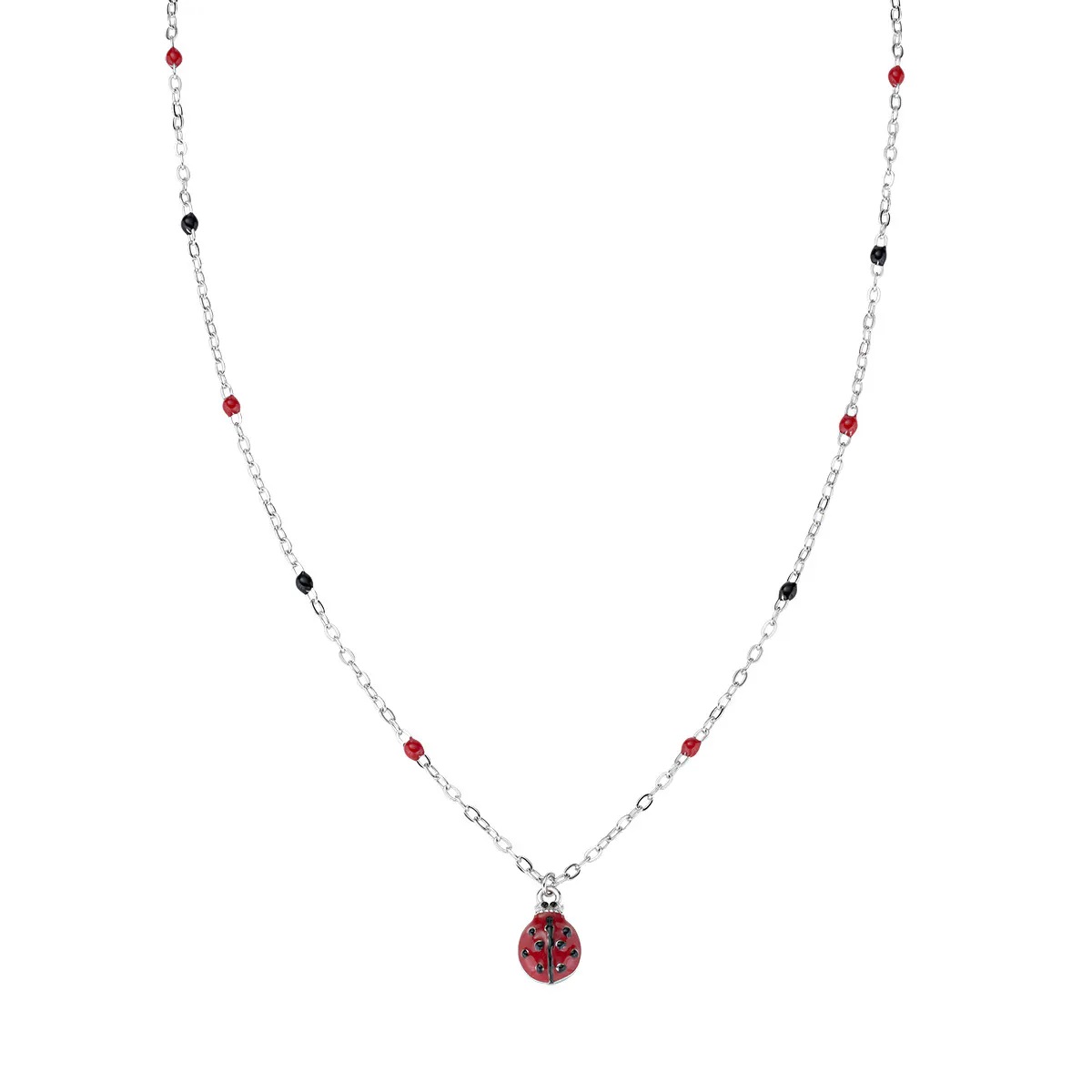 Collana Coccinella Rossa da bambino in Argento Sterling; Una simpatica coccinella rossa con puntini neri atterra sull'Arca di Noè, la collezione di Amen dedicata ai bambini! Collana in argento rodiato con pendente e smalto rosso e nero.