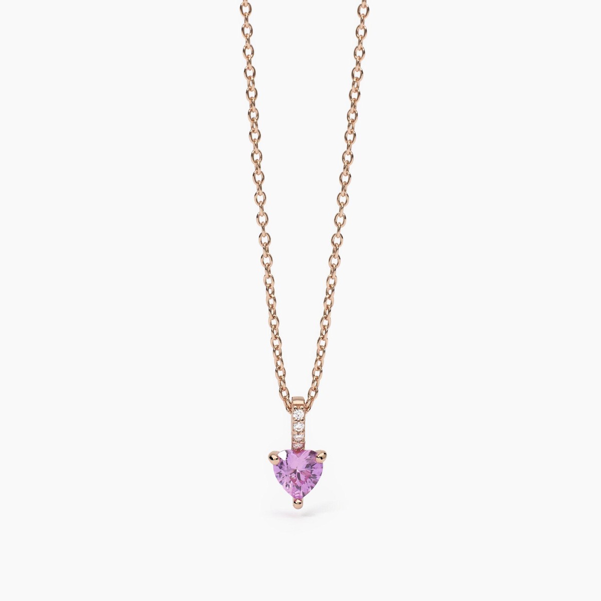 Girocollo regolabile in argento placcato oro rosa 18K con catena forzatina e tormalina sintetica rosa pendente taglio cuore.