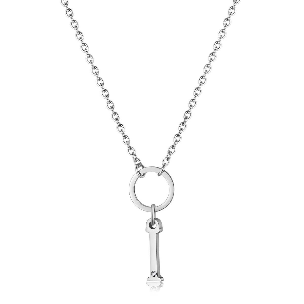 Collana girocollo in acciaio 316L con pendente a forma di lettera I e cristallo.