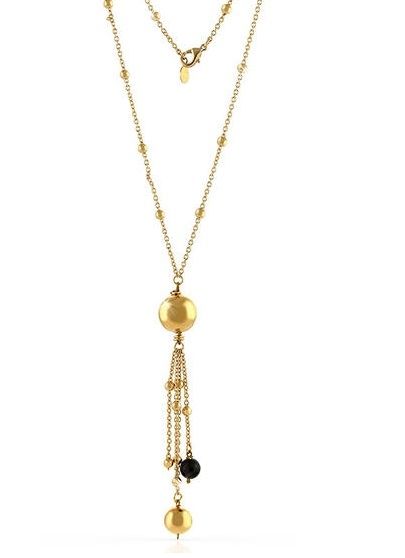 Collana lunga Y con sfere in bronzo dorato con sfera in bronzo lucido e smalto nero.
