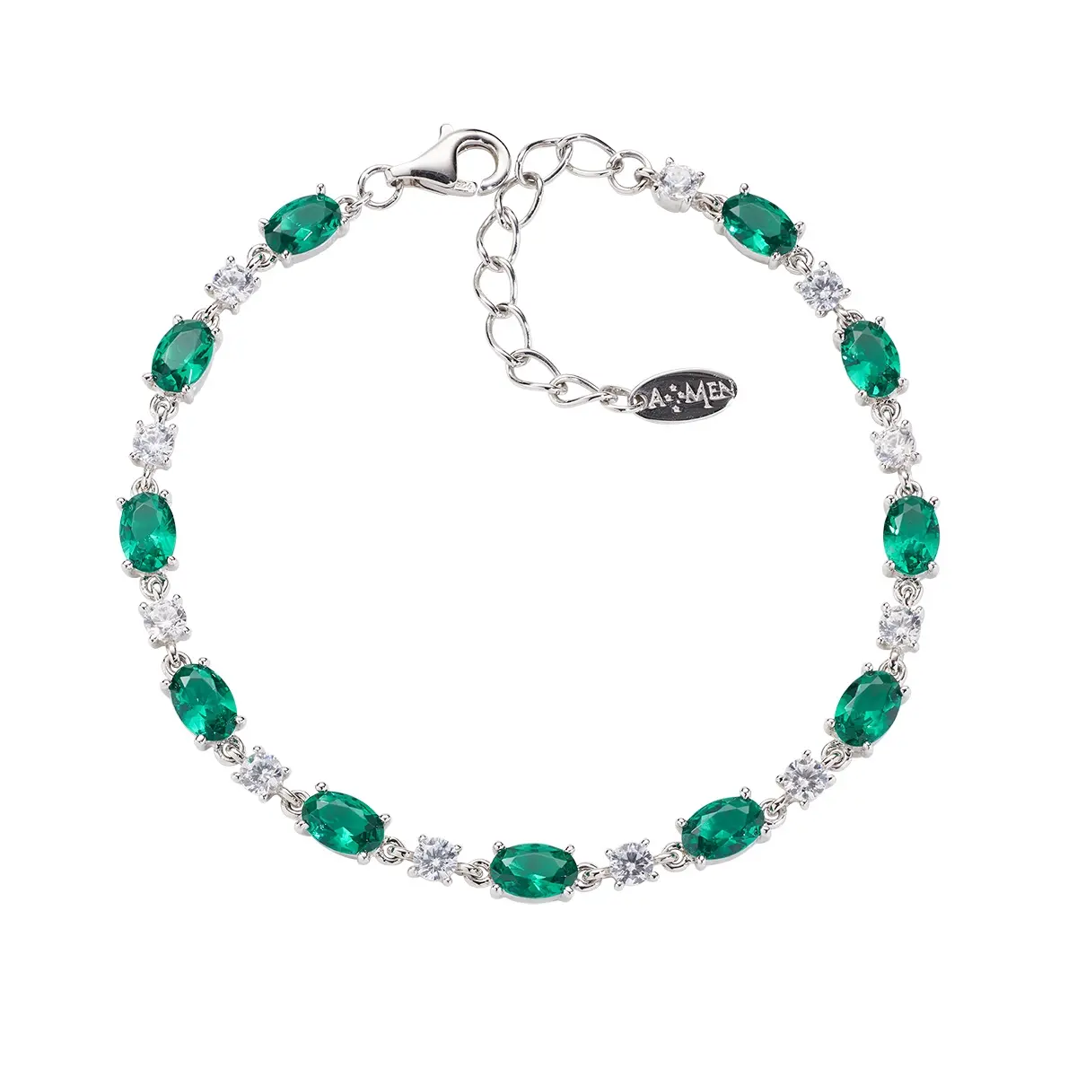 Bracciale in argento 925 rodiato con zirconi verdi e bianchi.