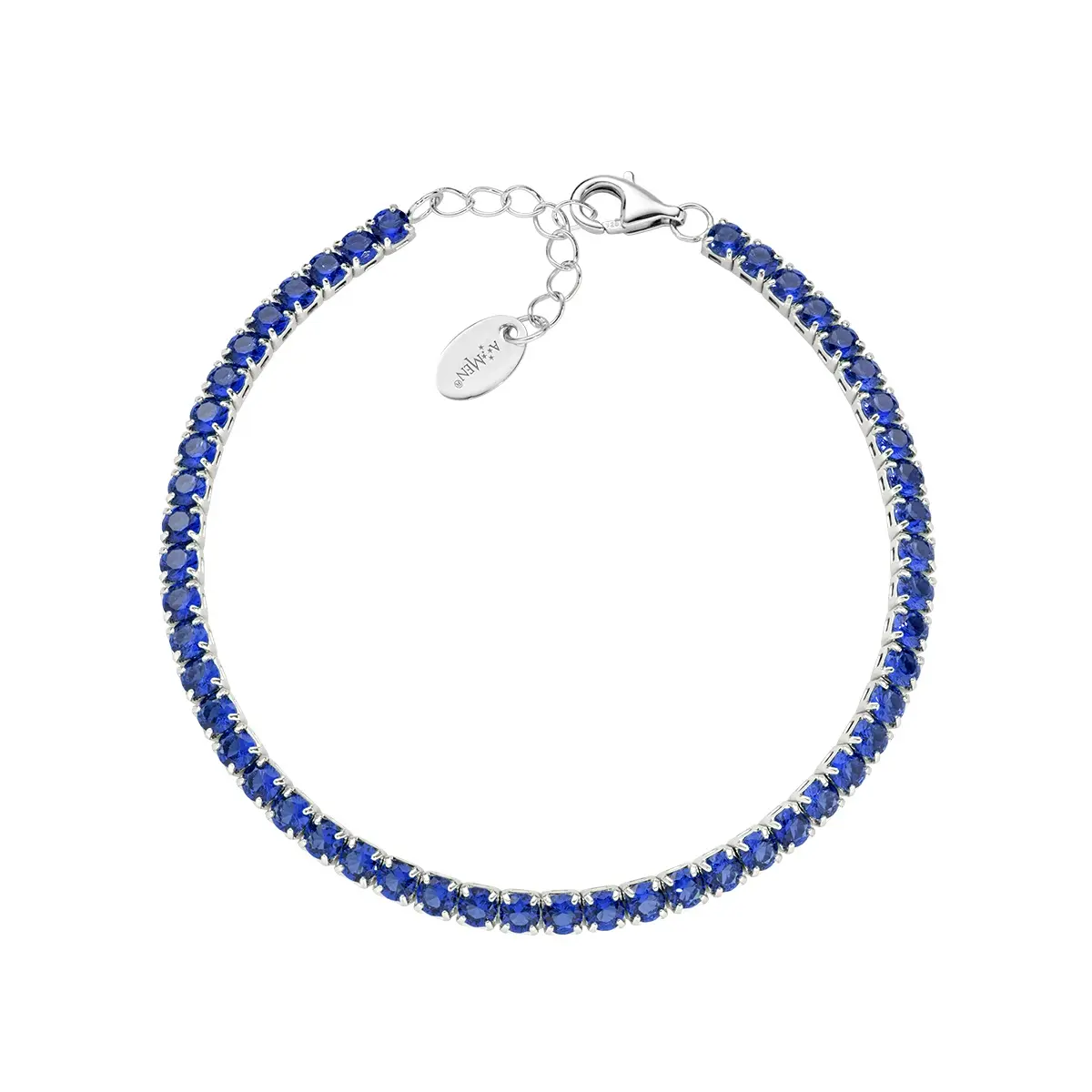 Bracciale tennis in argento 925 rodiato con zirconi blu da 3 mm.