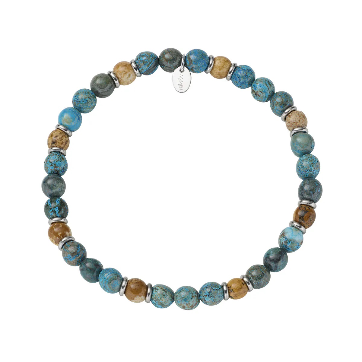 Bracciale elastico con perle di agata colorata da 6 mm ed elementi in acciaio inossidabile.