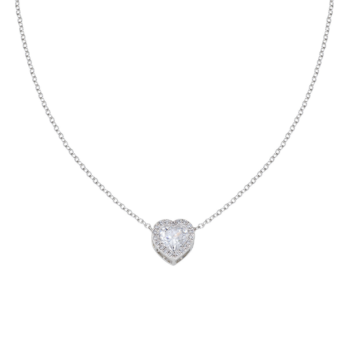 Collana in AG925 con zircone bianco taglio cuore - Rodio