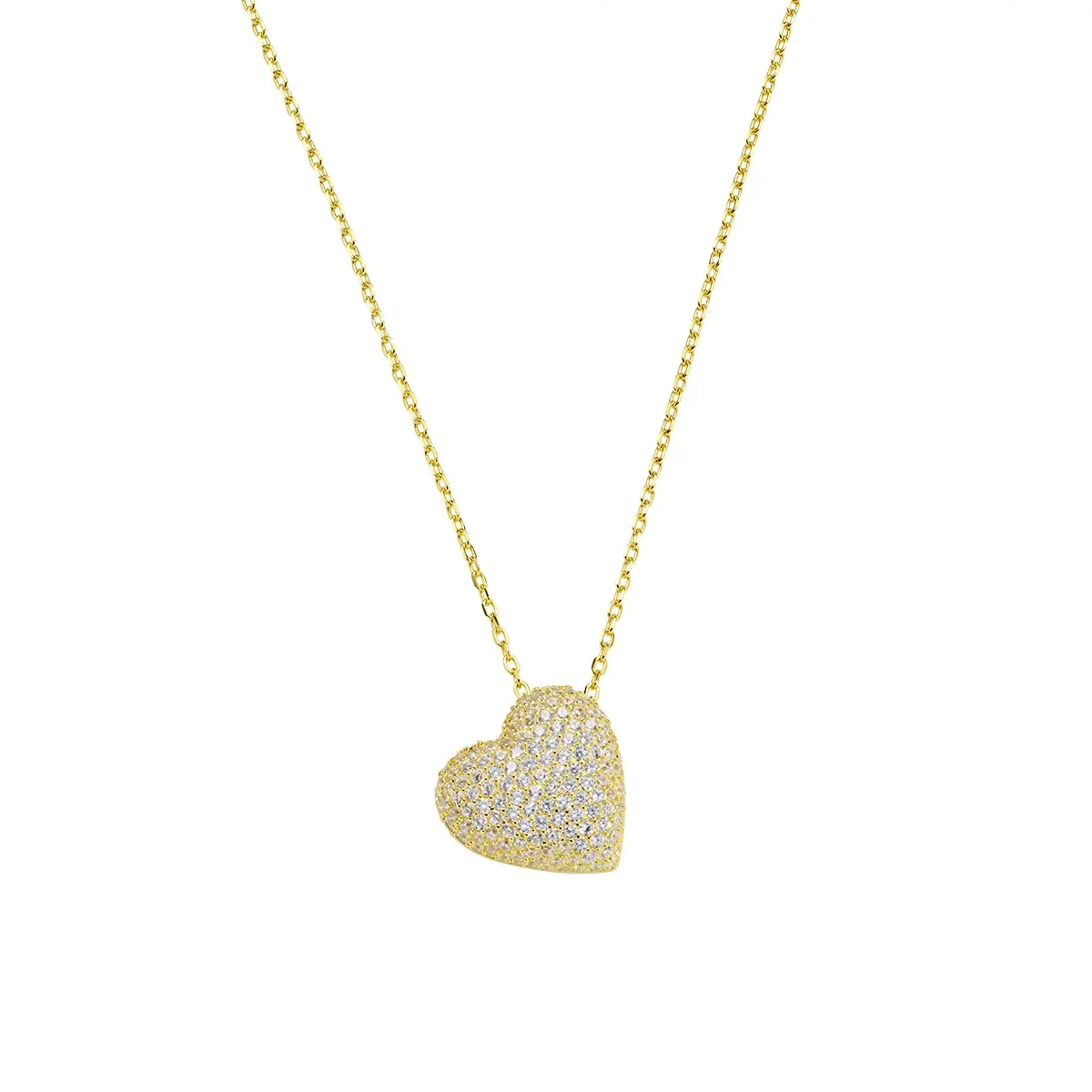 Collana in argento 925 dorato con cuore pendente bombato e pavé di zirconi bianchi.