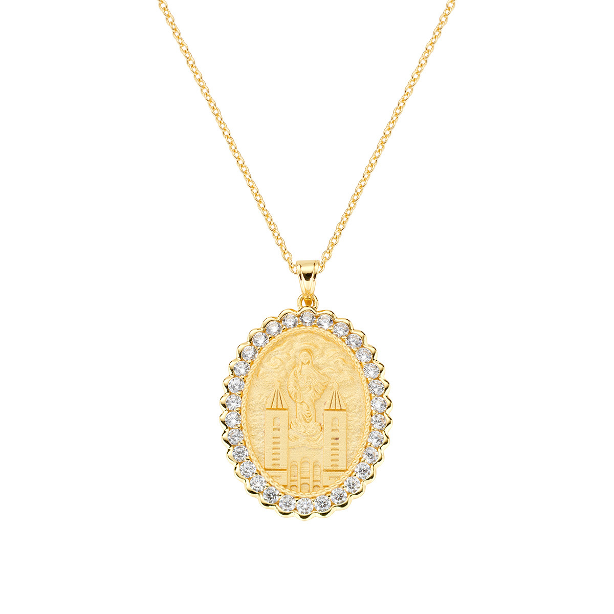 Collana in argento Medaglia Medjugorie con placcatura in oro e zirconi bianchi.