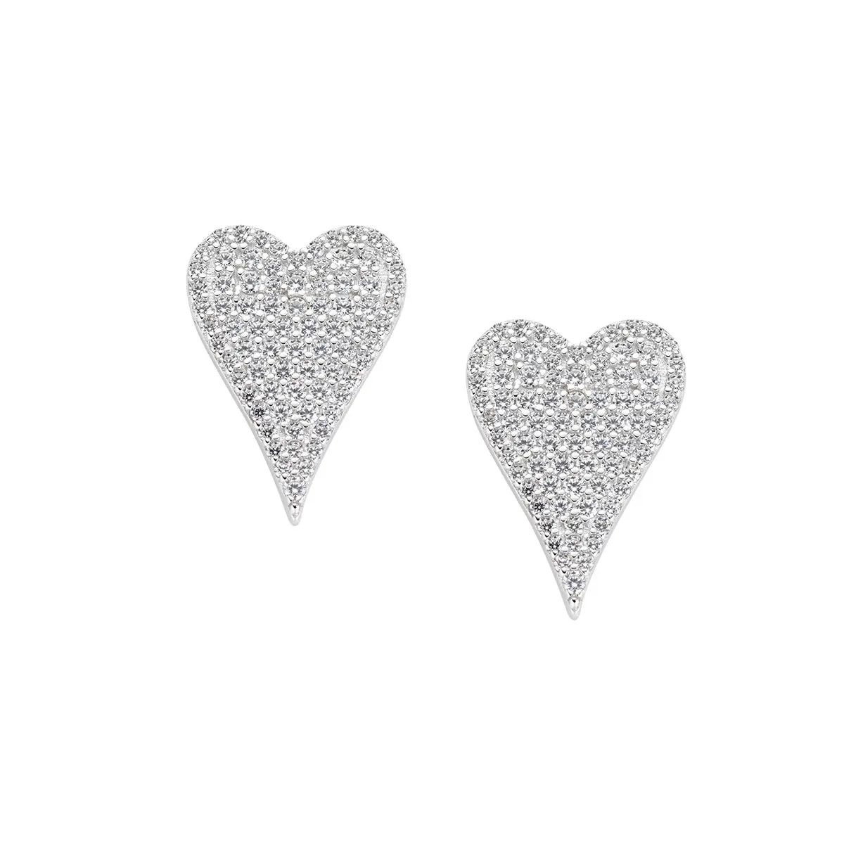 Orecchini a lobo in argento 925 rodiato a forma di cuore allungato con zirconi bianchi.