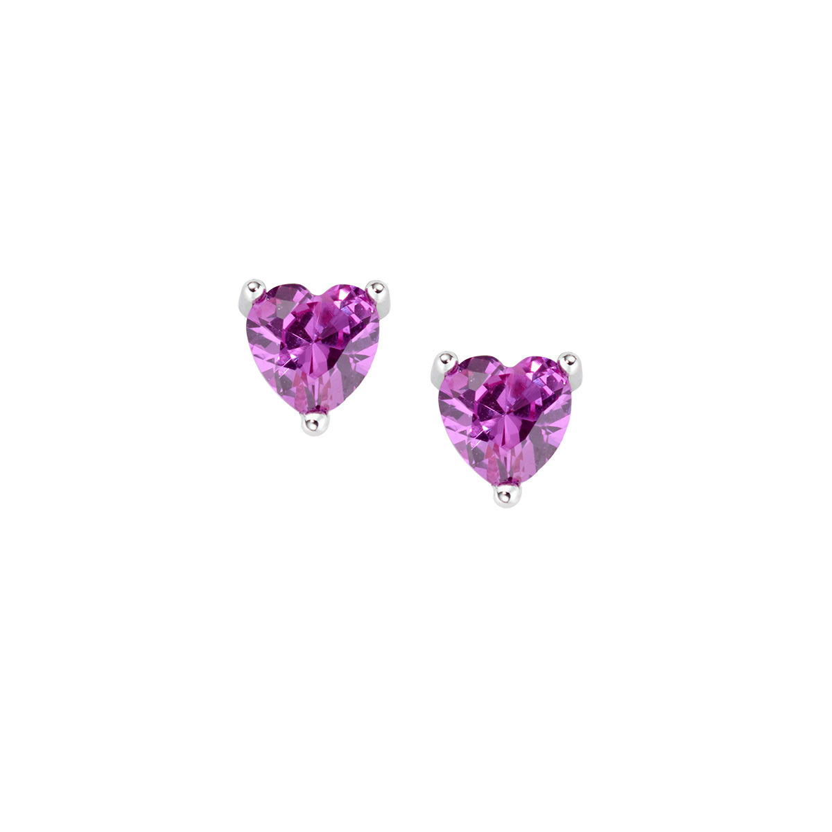 Orecchini in AG925 con zircone fucsia taglio cuore - Rodio