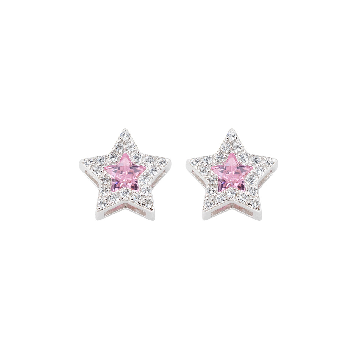 Orecchini in argento con placcatura rodio e zirconi bianchi e rosa.