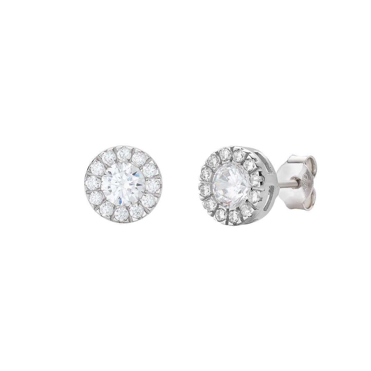Orecchini in argento placcatura rodio con zirconi bianchi - Ø 9mm.