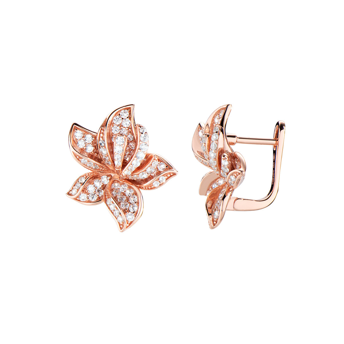 Orecchini orchidea in argento 925 placcatura rosè e zirconi bianchi.