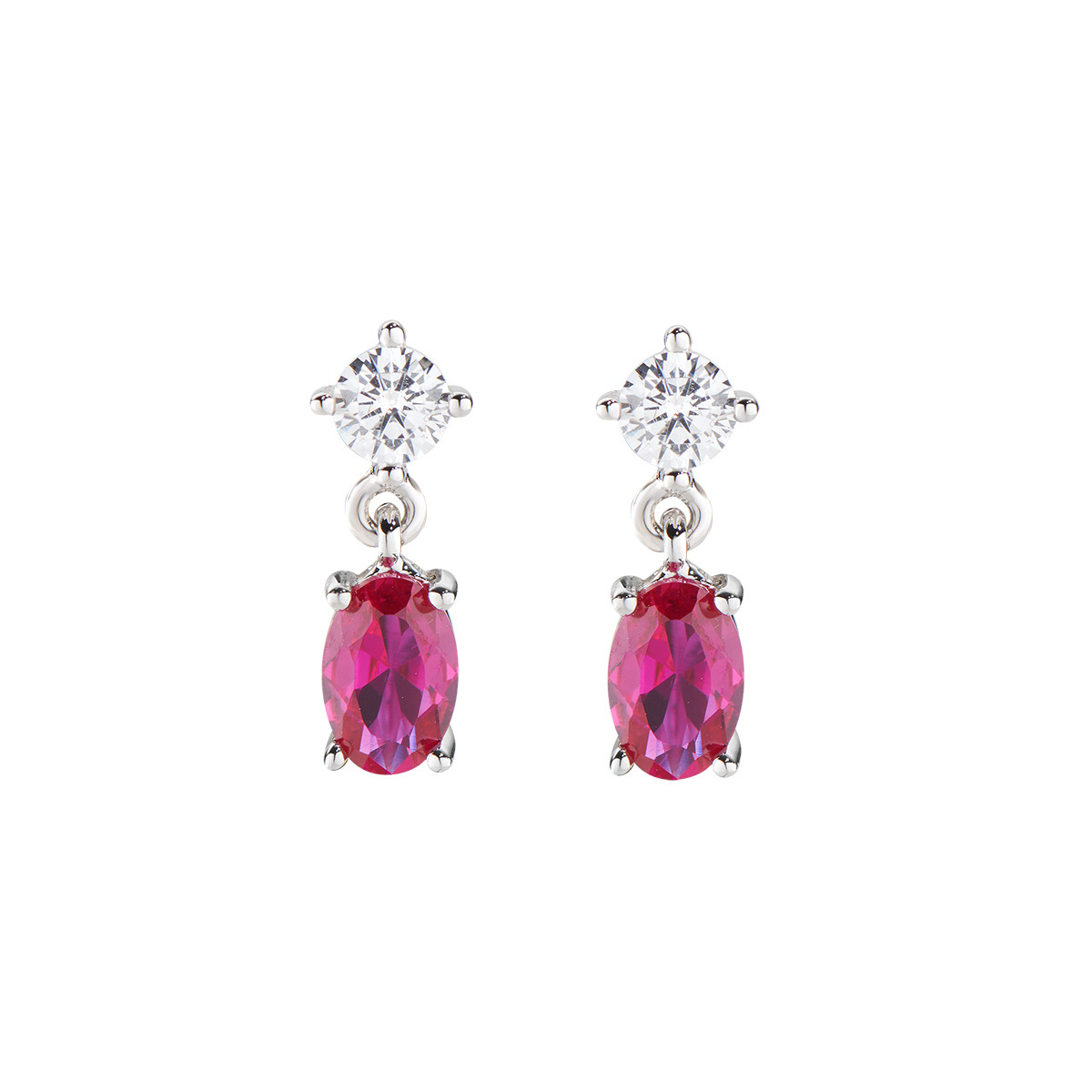 Orecchini in argento 925 rodio con zirconi bianchi e zircone rubino ovale.