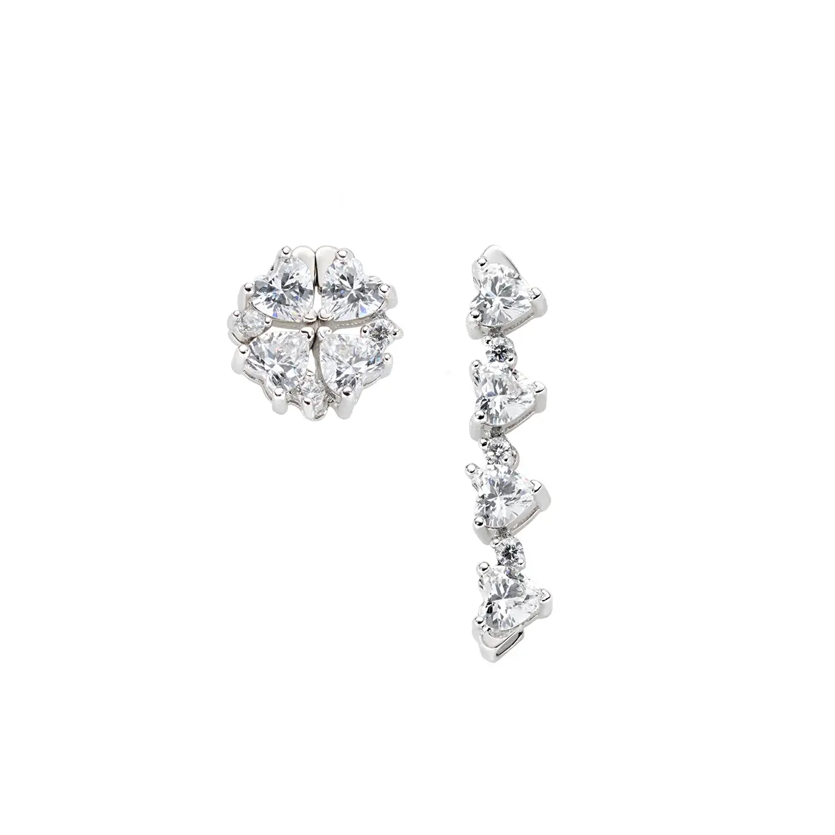 Orecchini Quadricuore magnetico in argento 925 rodiato con zirconi bianchi taglio cuore. Grazie alla calamita è possibile portare gli orecchini in due modi: chiusi in un Quadricuore di 8 mm, oppure come pendenti di 2 cm di lunghezza.