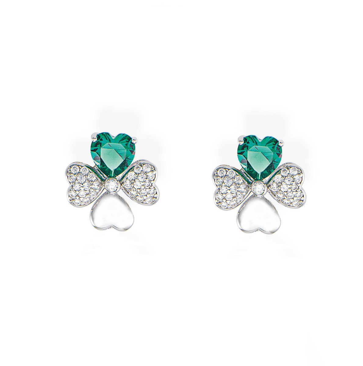 Orecchini in argento 925 rodio con zirconi bianchi e verdi - Ø 1cm.