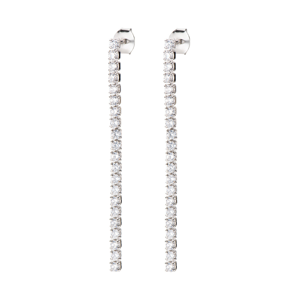 Orecchini in argento pendenti con placcatura rodio e zirconi bianchi.