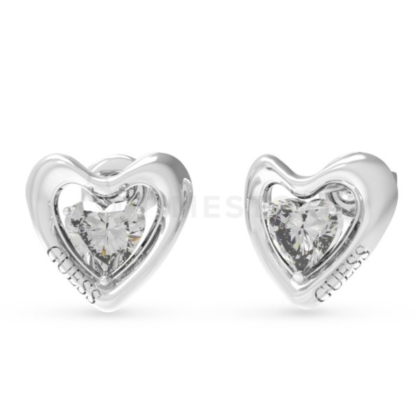 Orecchini a lobo cuore in acciaio finitura rodio e zircone.