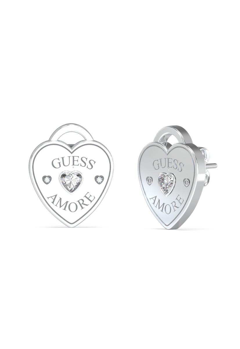 Orecchini da donna Guess a Lobo in Acciaio a Forma di Cuore con zirconi bianchi.