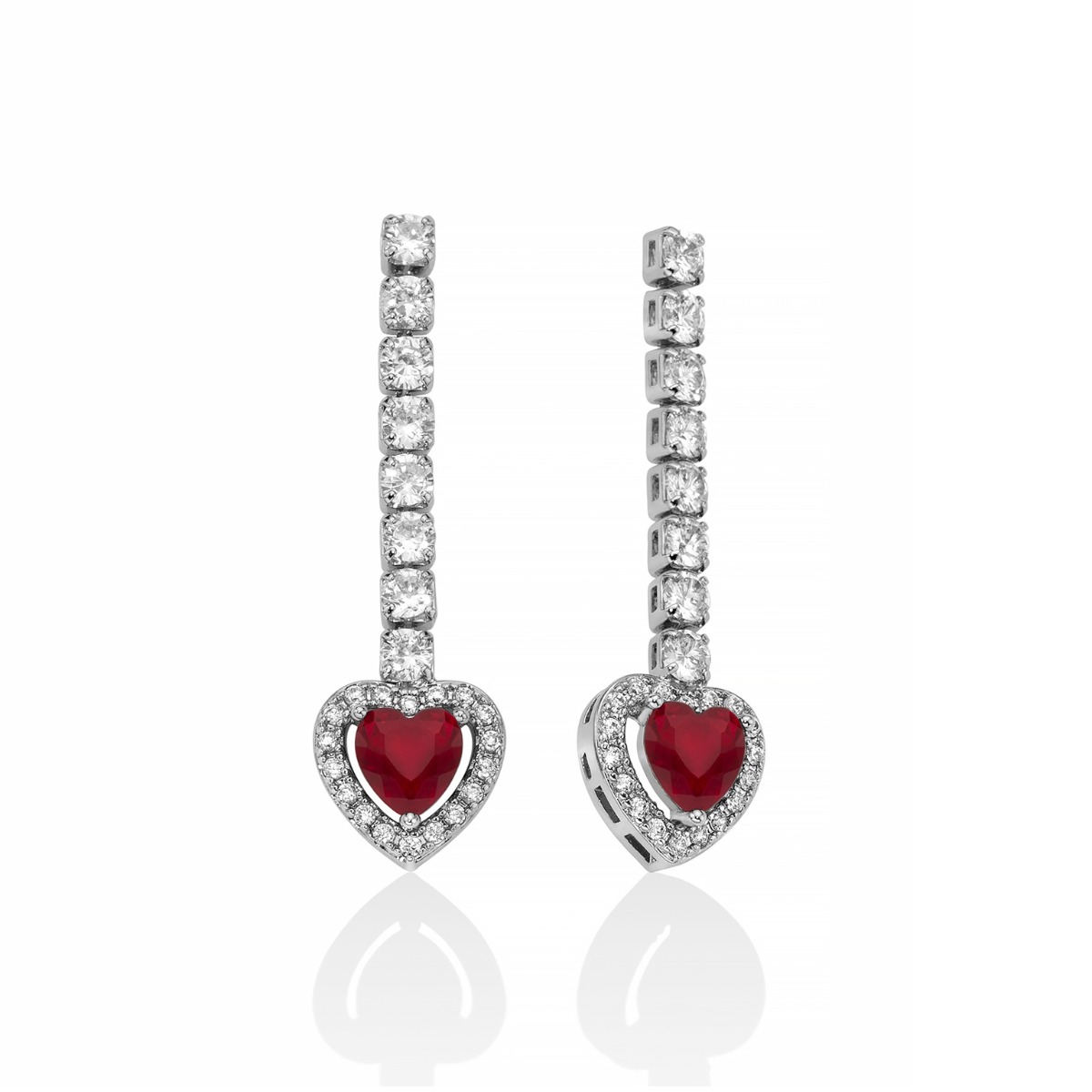 Orecchini donna Kiara della collezione Basik in ottone con zirconi bianchi e rosso.