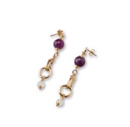 Orecchini in ottone placcato rosè impreziosito da sfere da ametista e agata rosa.