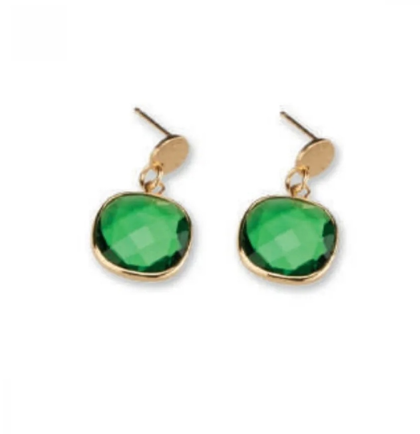 Orecchini in ottone placcato oro con cristalli smeraldo.