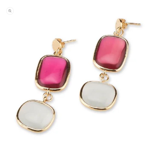 Orecchini in ottone placcato oro con occhio di gatto fuxsia.