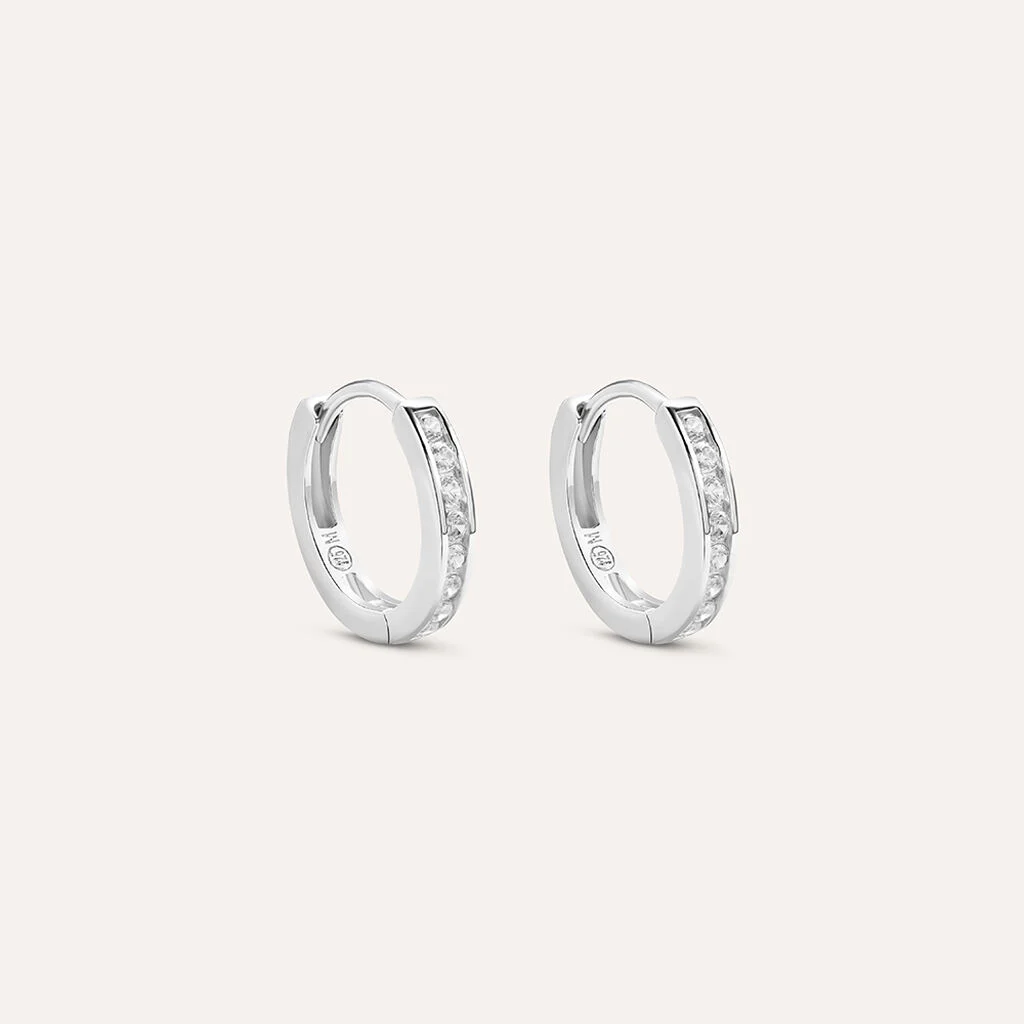 Orecchini A Cerchio Silver Elegance Argento Rodiato 925/1000 Diametro 15 mm Cubic Zirconia Bianco