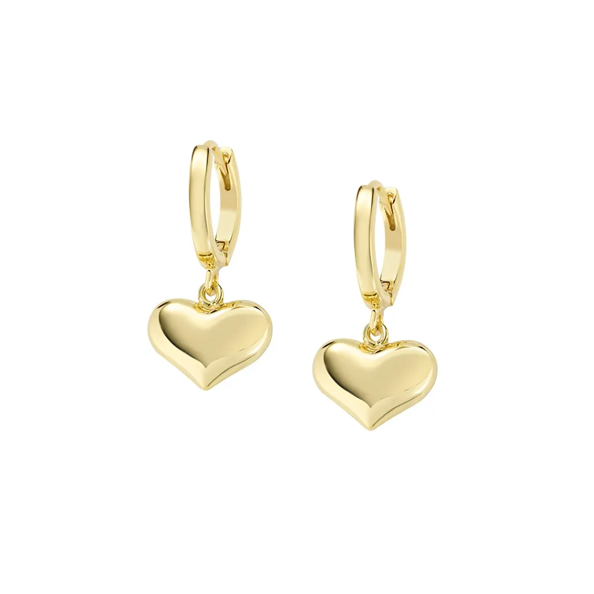 Orecchini a cerchio in argento 925 dorato con cuore pendente.