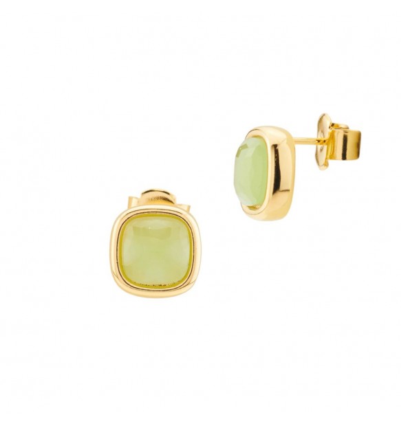 Orecchini a lobo da donna realizzati in bronzo dorato con cristallo briolette color verde chiaro.