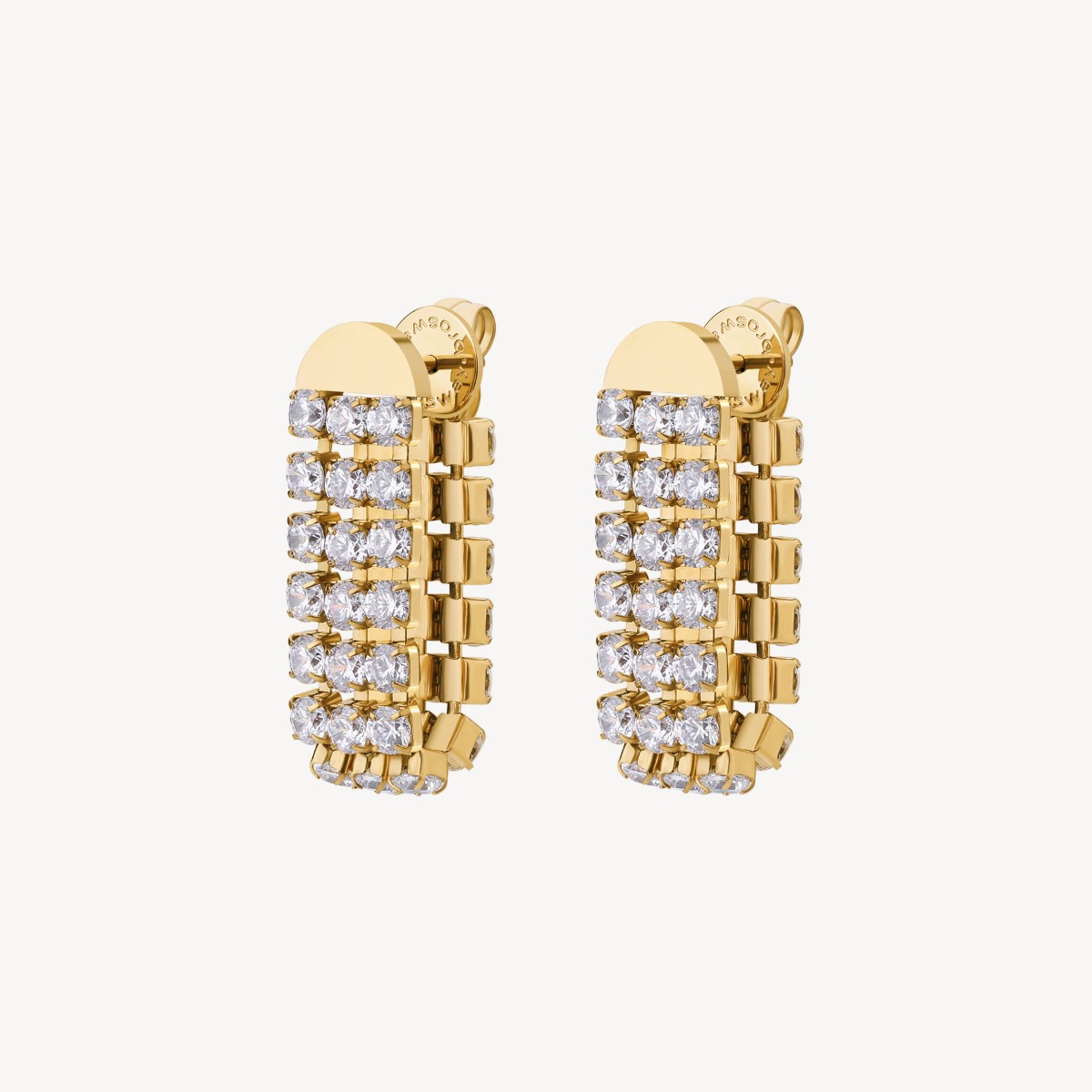 Orecchini a lobo in acciaio 316L, finitura pvd oro 14K e cubic zirconia.