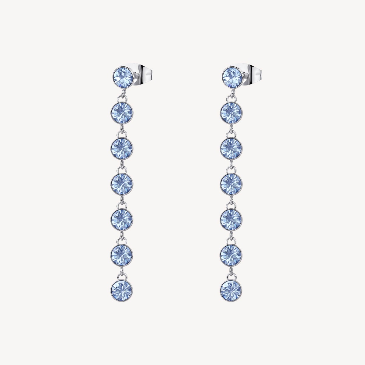 Orecchini pendenti in acciaio 316L e cristalli colore light sapphire.