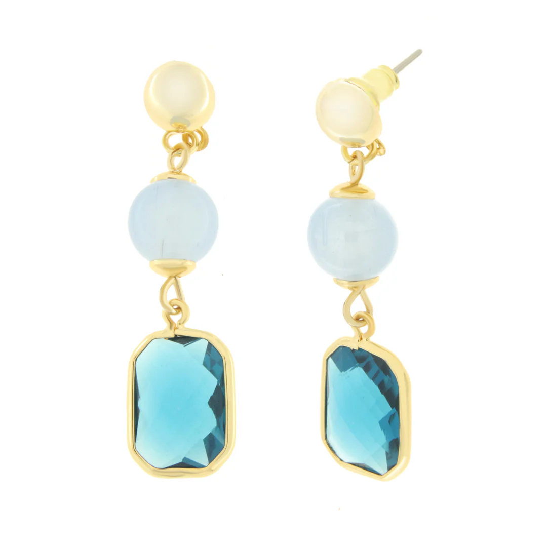Orecchini da donna BySimon della collezione AmoVenezia in Metallo placcato oro con cristallo quadrato blu e perla