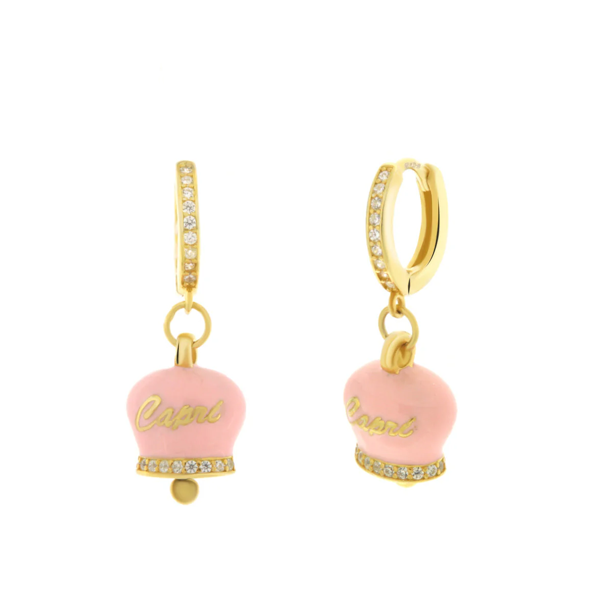 Orecchini in Argento 925 con campanella rosa Capri e zirconi