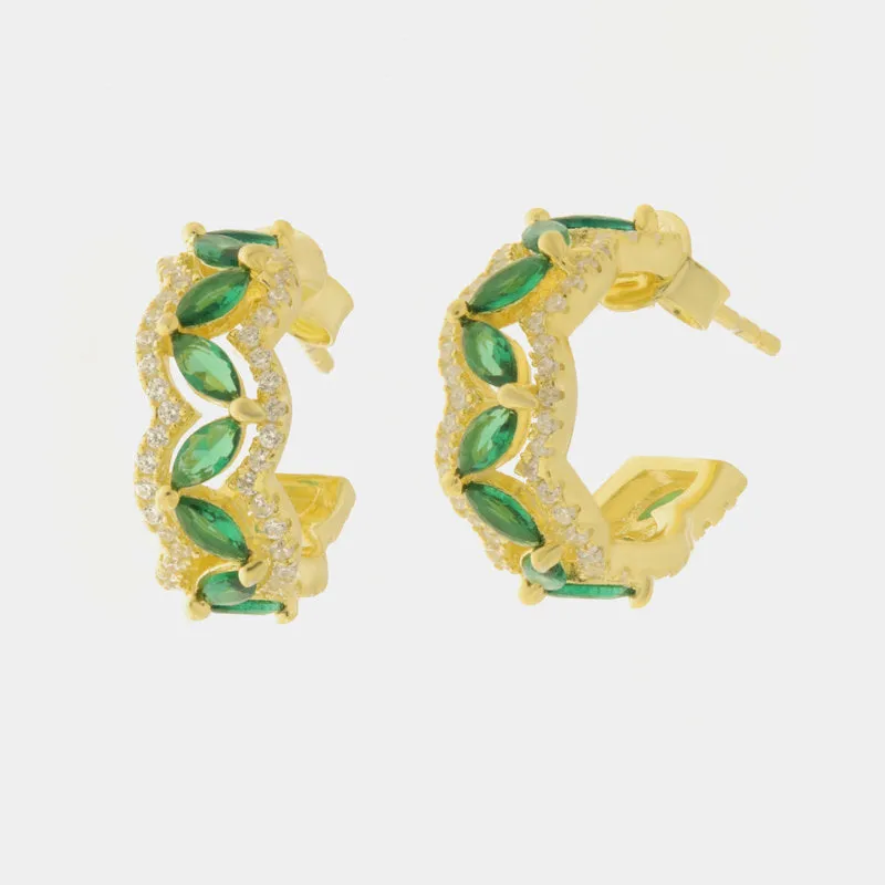 Orecchini in Argento 925 semicerchi con cristalli verdi
