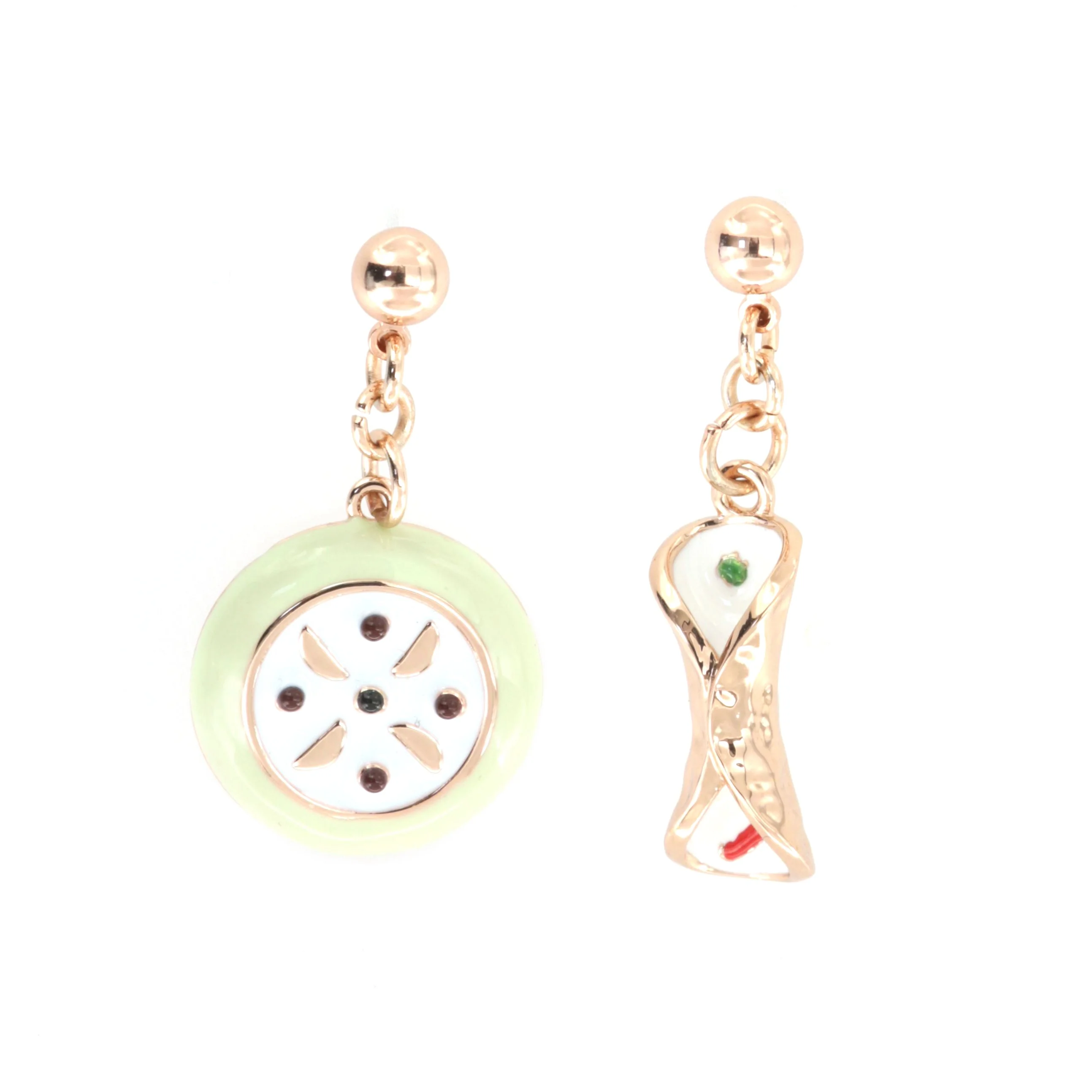 Orecchini da donna BySimon in Metallo placcato rosè della collezione I Sicily con cannolo e cassata pendenti, impreziositi da smalti colorati